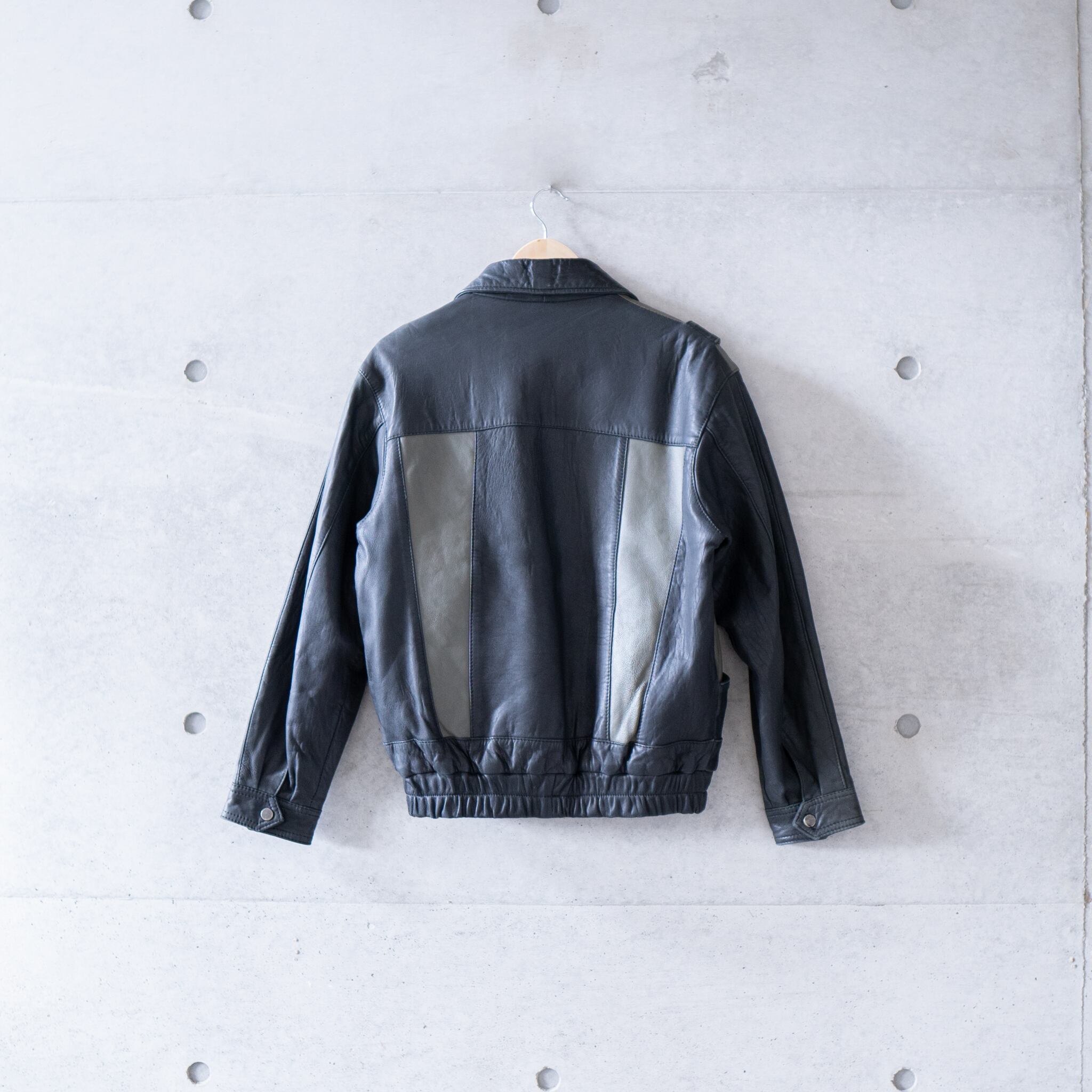 黒×緑カラーのレザージャケット。